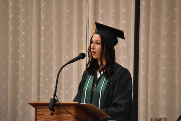 In her speech she showed her gratitude to Lake Campus Professors, Lynn Franck and Dr. Josh Ricker.