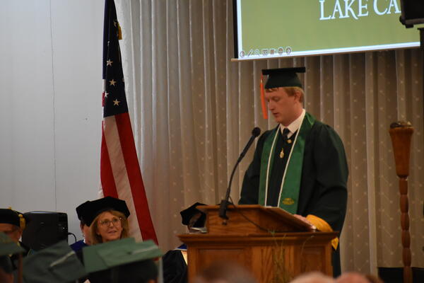 BOTTOM: Zachary Pleiman, Lake Campus graduate addresses his fellow classmates.